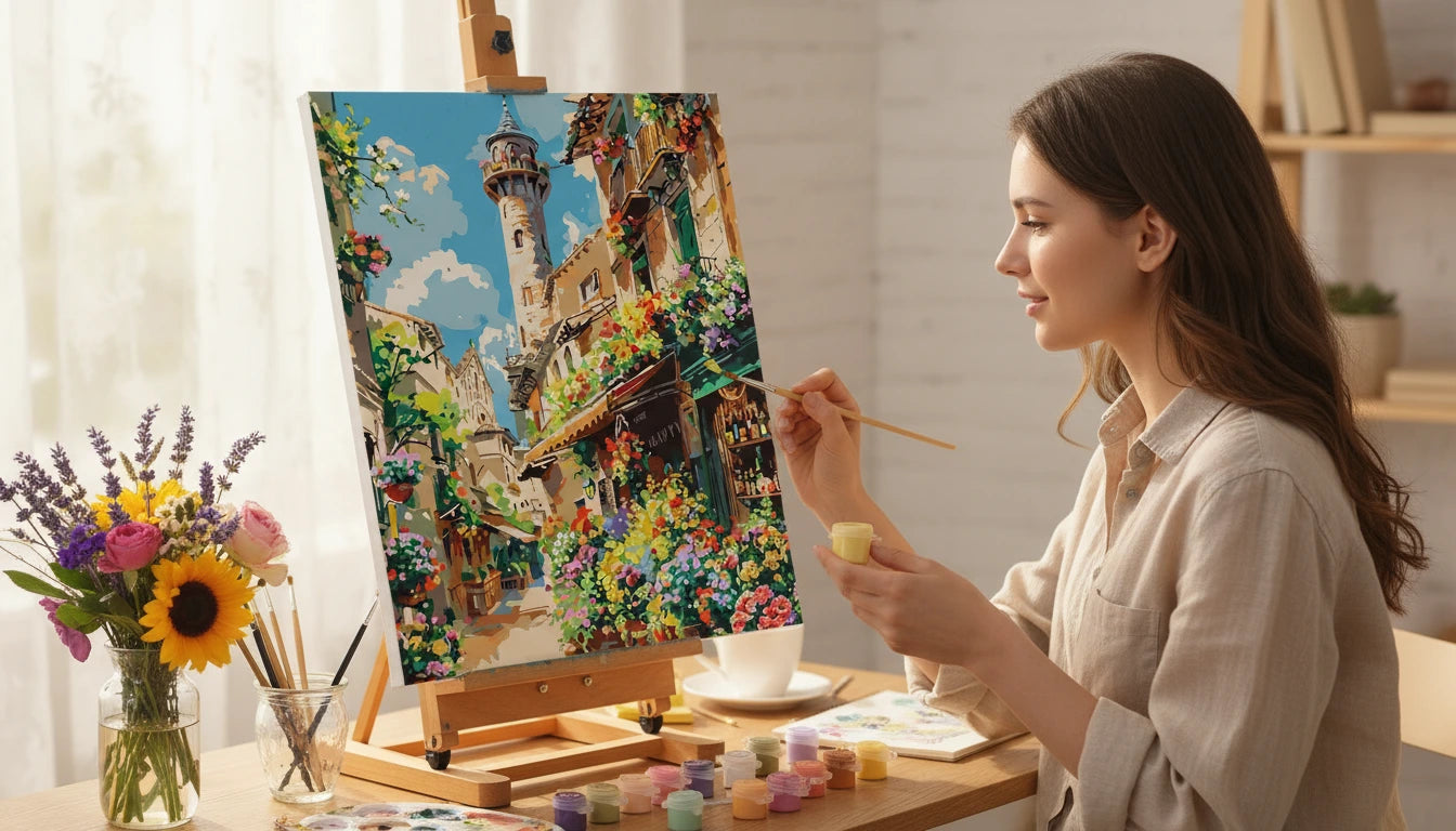 This painting is perfect for those who dream of travel, love European romance, atmospheric cities, the charm of cozy cafés, and flower-filled balconies. Ideal for adults, lovers of Provence and Art Deco, or anyone who values cheerful decorative details.