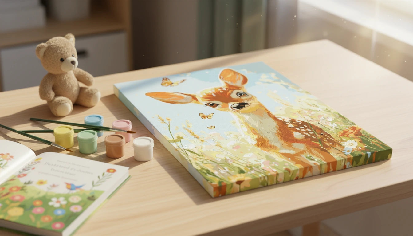 This charming paint-by-numbers kit is perfect for children’s rooms, as a gift for a child, teen, romantic girl, or nature lover, and for adding a touch of coziness to any family living room.