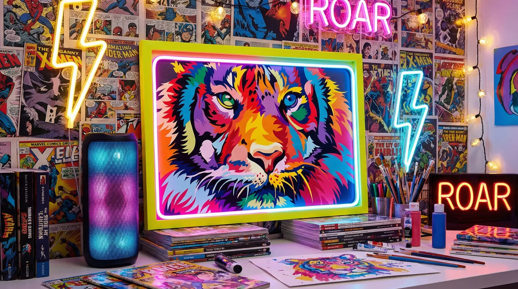 Ten efektowny obraz jest przeznaczony dla miłośników sztuki, którzy cenią sobie odważne kolory i hipnotyzujące obrazy zwierząt. Jest idealny dla osób poszukujących wymagającego, ale satysfakcjonującego doświadczenia malarskiego, które zaowocuje potężnym, wyrazistym dziełem sztuki. Doskonały na prezent dla kogoś, kto kocha tygrysy lub żywą, niekonwencjonalną sztukę.