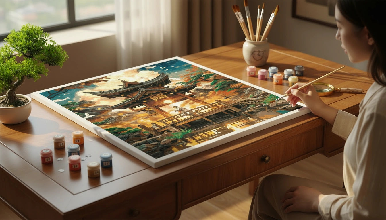 This painting is designed for lovers of Eastern aesthetics and meditation, nature enthusiasts, and those seeking unique interior accents. Ideal for unwinding after work, as a dreamy gift, or as a stylish touch for a modern living room or office.