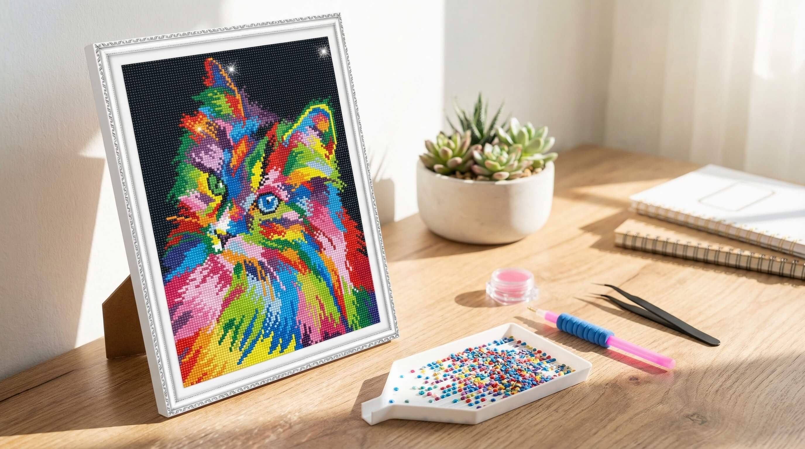Идеально подходит для любителей искусства и кошек, которые ценят смелые, современные дизайны. Этот набор средней сложности предлагает увлекательную творческую задачу для тех, кто хочет создать эффектное произведение. Это идеальный подарок для всех, кто обожает кошек и яркое, абстрактное искусство.