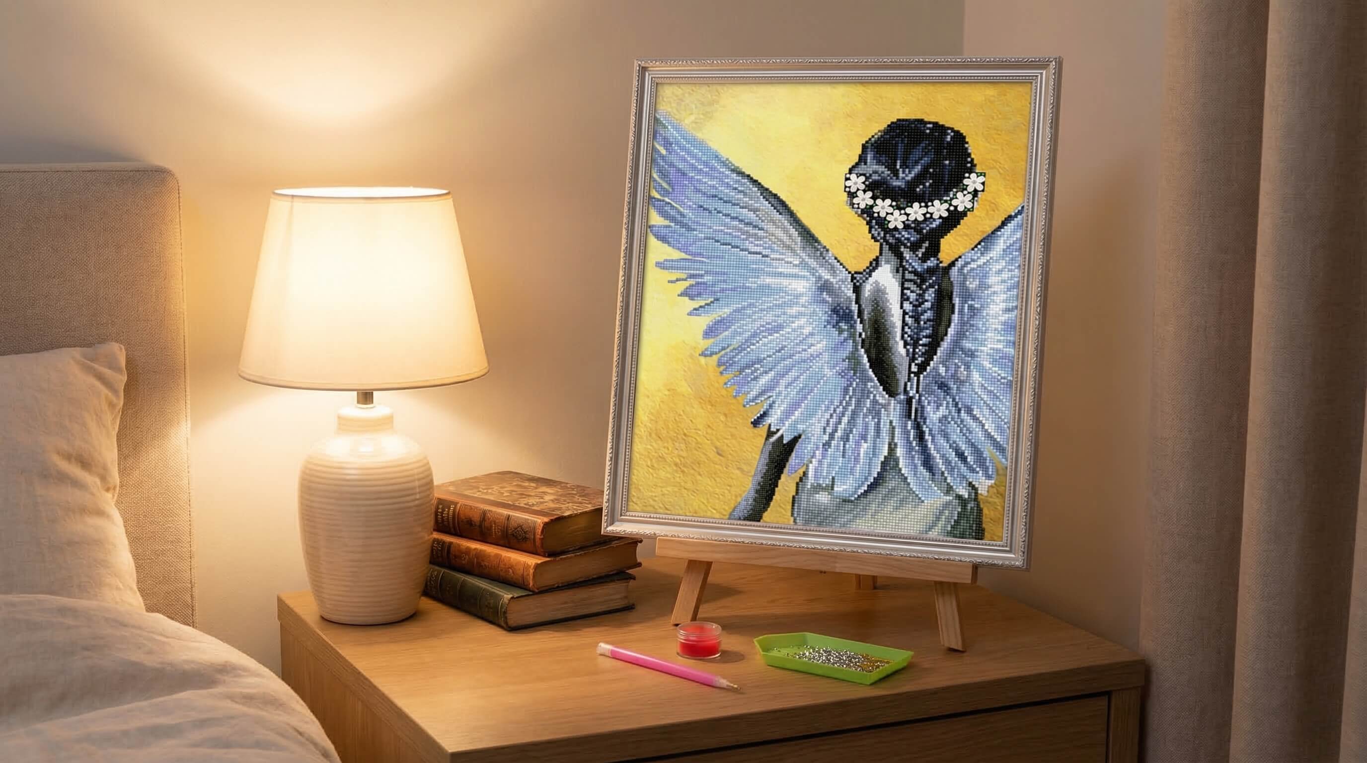 Идеально подходит для опытных алмазных живописцев, ищущих сложный и увлекательный проект. Этот набор идеально подходит для тех, кто ценит замысловатые узоры и хочет создать произведение, вызывающее чувство божественной красоты и спокойствия. Он также станет продуманным и впечатляющим подарком для любителей искусства.