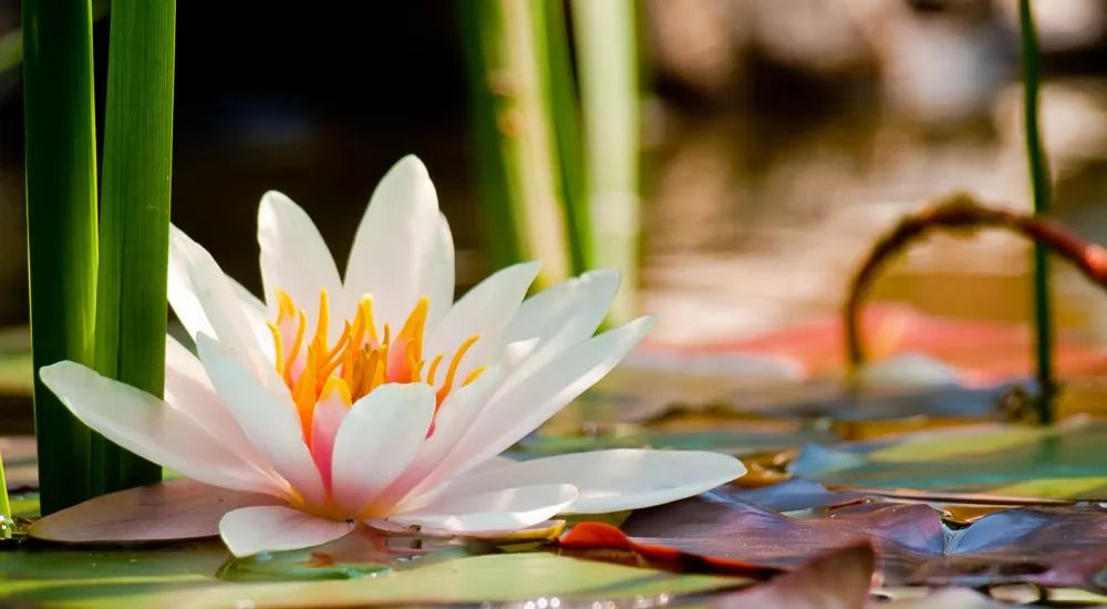 В коллекции представлены сюжеты с розовыми и белыми цветами лотоса на воде, среди камней или под лучами солнца.