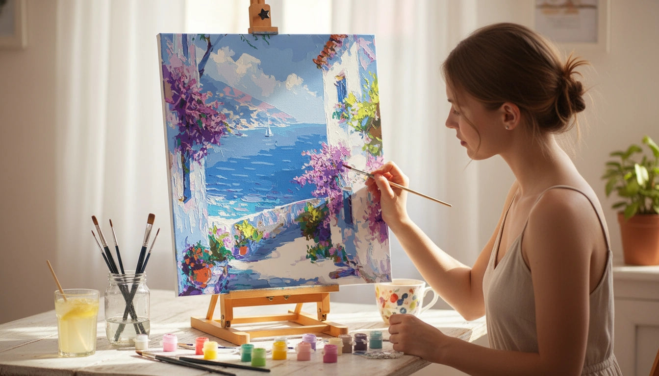 Perfect for travel lovers, sea enthusiasts, fans of cozy Mediterranean interiors, and anyone who dreams of bright colors and relaxing creative evenings.