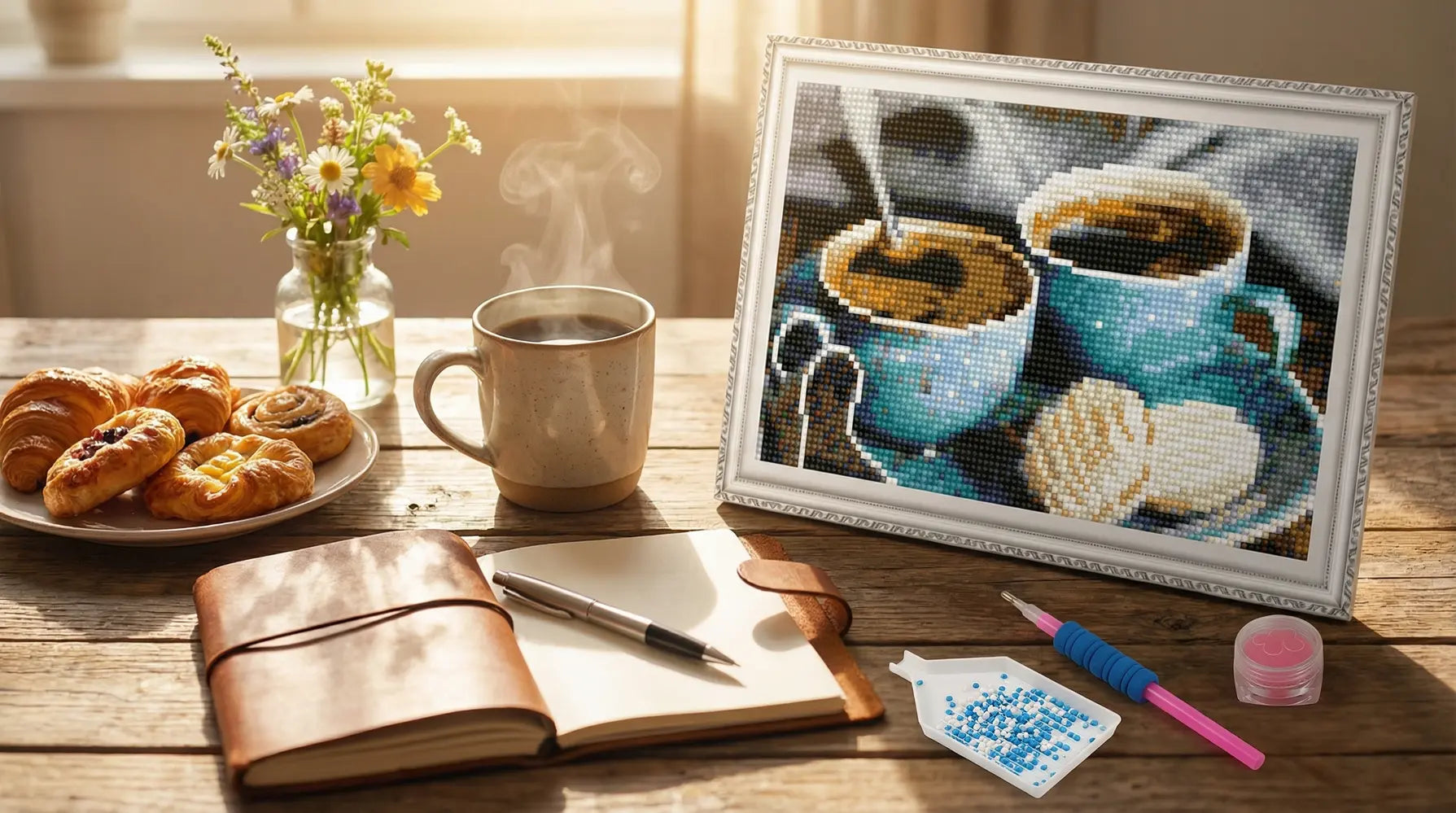 Идеально подходит для начинающих и энтузиастов алмазной живописи, которые ценят очаровательные натюрморты. Прекрасно подходит для тех, кто ищет успокаивающее творческое занятие или приятный подарок на новоселье или просто так.
