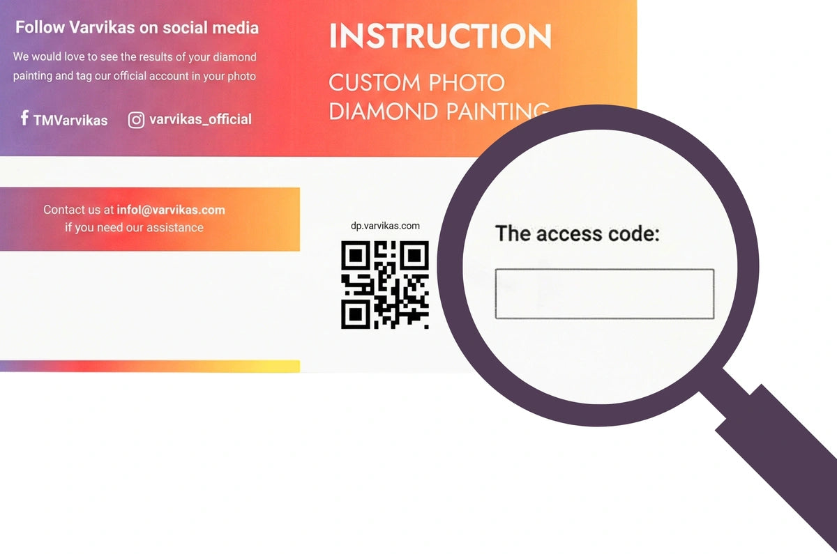 Once you receive your purchased mosaic, there will be instructions inside and your access code. Use it at dp.varvikas.com to generate your personal pattern.